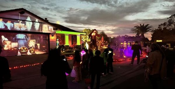 英伟达创意总监 Sabour Amirazodi 还通过 NVIDIA Studio 展示了新的项目,使用强大的投影仪装饰其房子,呈现出非常“魔幻”的万圣节效果。
