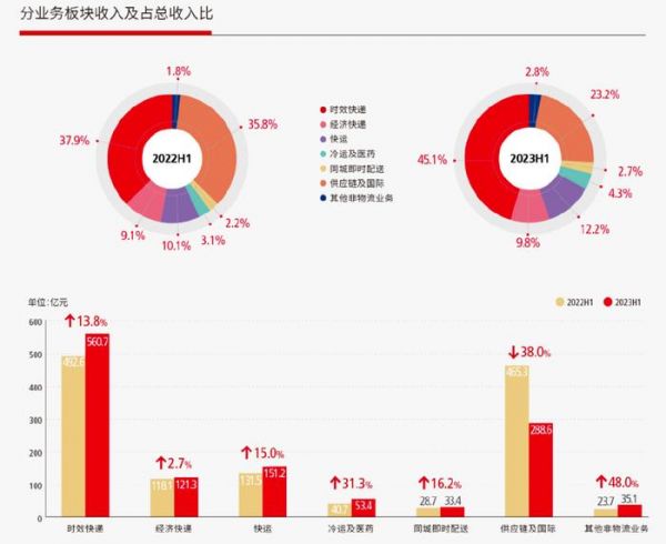 顺丰上半年分业务板块收入及占总收入比 图源:顺丰