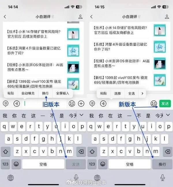 10月31日晚,微博热搜上出现了一个令人好奇的词条——“微信新增独立发送按钮”。原来,iOS微信更新了8.0.43版本,新增了一个换行按钮。这个功能看似简单,却解决了很多iPhone用户的痛点。