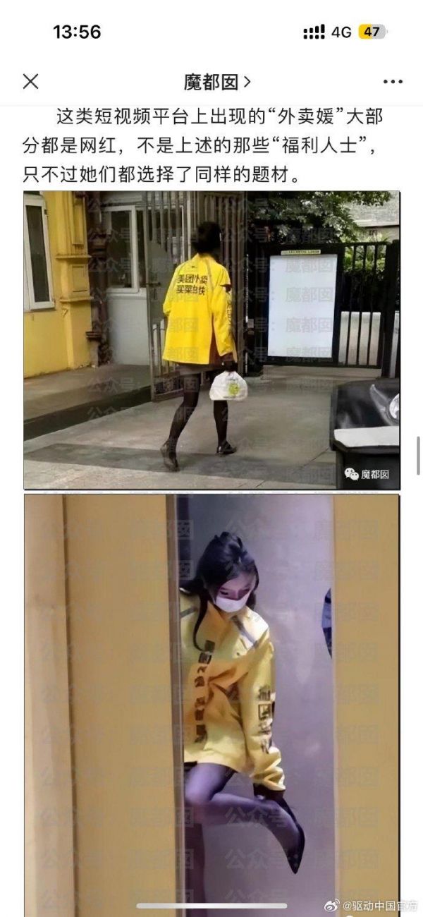 11月1日消息,近日,大量的“外卖媛”的图被爆出,一个个妆容精致,很美的小姐姐们穿着大尺度的衣服和外卖服装送外卖。