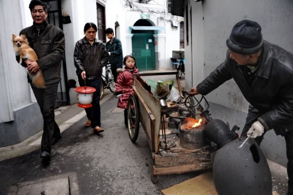 弄堂风情之三:爆炒米花, 王医马弄。(摄影/ 郑宪章)