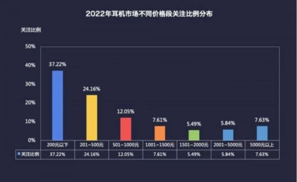 2022年耳机市场不同价格段关注比例分布 图源:中关村在线