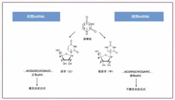然而,要达到这一点,无论是将mRNA作为疗法还是疫苗,都需要解决一个问题:因为mRNA本质上与病毒和细菌相似,一旦以外来途径进入人体细胞,很容易被人体的先天免疫系统识别为危险信号,并引发强烈的炎症反应。在这种情况下,mRNA就无法实现治疗或者疫苗的效果。