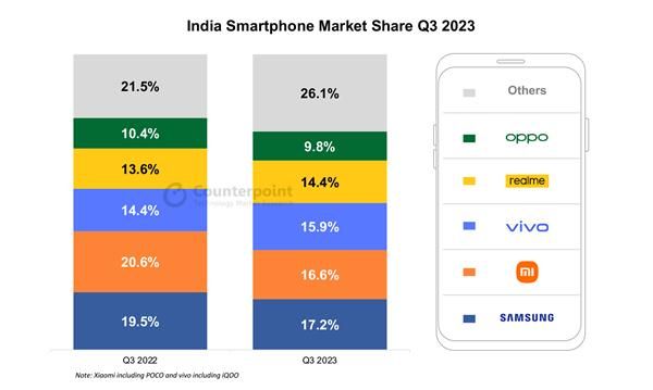 中国手机占据半壁江山!Q3印度手机出货量公布