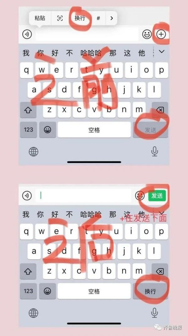 @小哥哥三岁啦:改过的发送键太小了,还挡住了➕,打字的同时就不能选照片了,只能先发照片,或者先发文字,还是用原来的吧,换行也不是非要不可的。