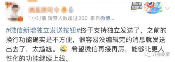 昨日,#微信新增独立发送按钮#
