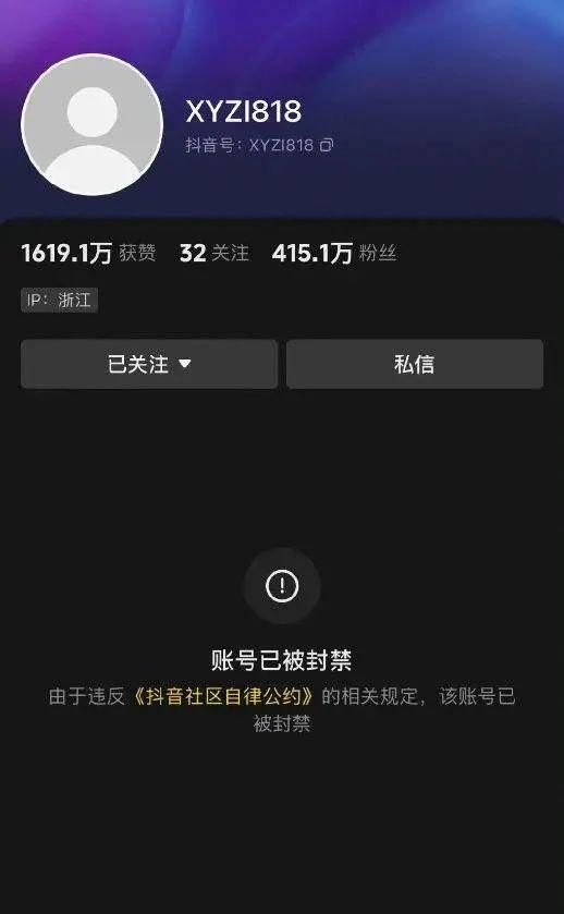 抖音账号被封。
