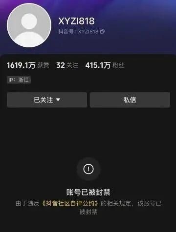 来源:抖音截图头部主播抖音账号被封禁