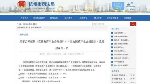 如何规范?“电商之都”杭州出了新招。10月30日,杭州市司法局发布公告称,为打造良好的法治化营商环境,杭州市将编制系列重点产业合规指引,同时公开征集关于《直播电商产业合规指引(征求意见稿)》意见建议(以下简称《指引(征求意见稿)》)。