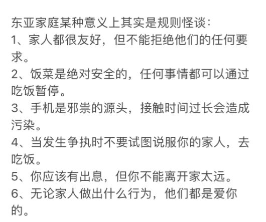网友纷纷列举出东亚家庭里的规则怪谈,心意相通的大家无需解释,自发把这怪谈续写到了几百条。