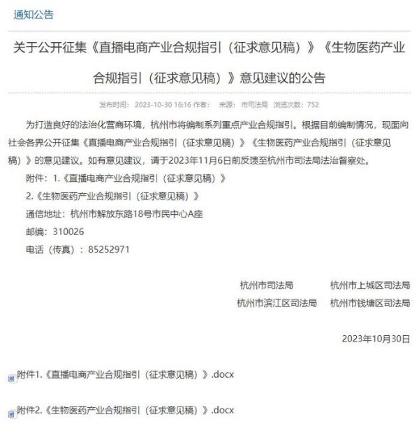 就在双11的“底价协议”引发热议时,杭州司法局于10月30日发布了关于公开征集《直播电商产业合规指引》(以下简称《指引》)意见建议的公告。