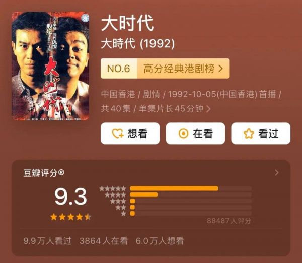 只是,与香港不同,它们建立起符合经济和社会发展状态的这种“小XX”文化,保证了社会文化及国民情绪稳定,总体还算平稳。反观香港,由于未完成文化重建,在从“大时代”到“小时代”的落差中社会情绪分化,酿成大错。后来,香港再未出过能影响一代人的文艺作品,也失了《笑看风云》般的超脱心境。