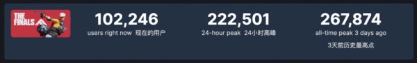 别的不说,游戏热度倒是挺高。根据 steamdb 数据显示, The Finals 最高同时在线人数超过了 26 万,在 steam 最热玩游戏榜上排第 6 ,仅次于 CS2、 dota2 那几个万年高人气怪物。