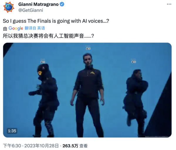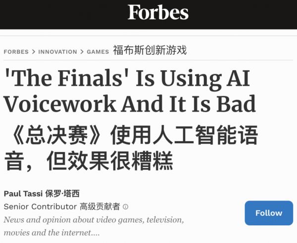 《The Finals》属实是倒大霉,它压根就不是第一个搞 AI 配音的,但它一定是搞 AI 配音的游戏里最惨的。
