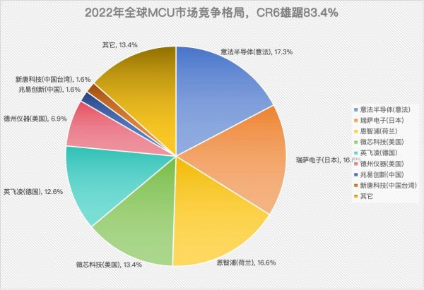 Omdia数据显示,2022年全球MCU市场CR6高达83.4%,以美欧日芯片巨头为主。