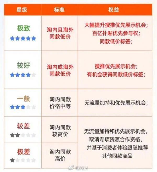淘宝“五星价格力”标准 图源:淘宝