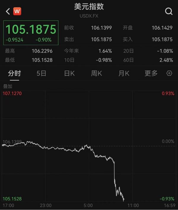 首先,美元指数迅速跳水,人民币汇率压力缓解。在美国非农就业数据一公布,美元指数应声下跌,美元指数DXY日内大跌1%,最低至104.94,截至收盘跌幅1.02%,为105.07,创9月20日以来新低。值得注意的是,自11月以来,美元指数已经连续3天下跌。