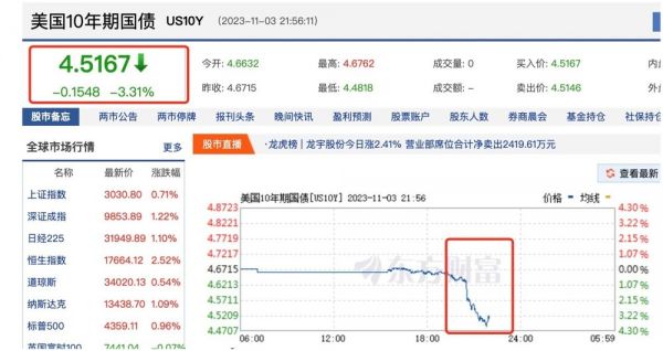 其次,美国10年期国债收益率下行。作为美联储加息最为受益的资产指标,美国10年期国债收益率在非农就业数据公布后一度跌至4.4818%,触及9月29日以来最低水平。随后,有所回升,但美债收益率全线下跌。