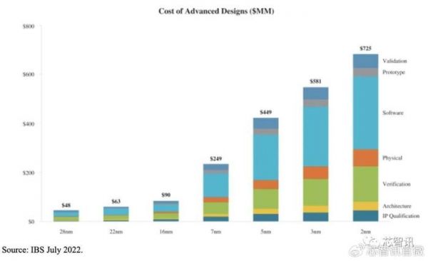 根据此前研究机构IBS公布的一份研究报告显示,成功开发一款3nm的芯片可能将需要5.81亿美元,其中软件开发和验证占了芯片设计开发成本的最大份额。在芯智讯看来,鉴于苹果M3系列的三款芯片属于同一个系列,都采用了相同CPU和GPU内核架构,仅在CPU、GPU内核数量以及同一内存容量上有些区别,因此我们不能简单的将其开发费用乘以3倍,可能实际的开发费用只要1.5倍就差不多。不过,三款芯片的光罩制作及流片成本是需要乘3的,所以总的开发费用确实有可能在10亿美元左右的水平。