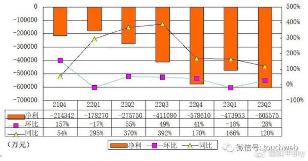 相比于交付量始终无法提升到每月2万台,蔚来的亏损则逐季增大。财报显示,蔚来2023年第二季度总营收87.717亿元(约12.097亿美元),较上年同期下降14.8%;同期,蔚来2023年第二季度净亏损60.558亿元(约8.351亿美元),较2022年第二季度相比扩大119.6%,较2023年第一季度相比扩大27.8%。