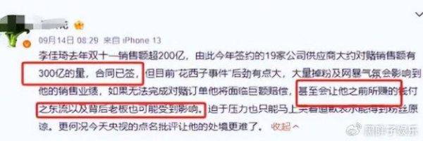 李佳琦三百亿对赌协议曝光,和59家企业签约,完不成要赔偿200亿