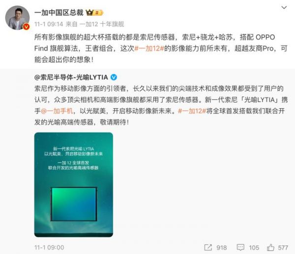 另据预热,一加12将全球首发搭载索尼LYTIA联合开发的光喻高端传感器,除了搭载骁龙8Gen3外,还有哈苏影像系统、OPPO Find旗舰算法。李杰当时就表示这次一加12的影像能力前所未有,超越友商Pro。