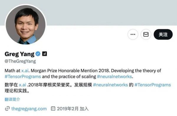 Greg Yang:曾就职于微软研究院,于 2018 年荣获摩根奖(Morgan Prize)荣誉奖。