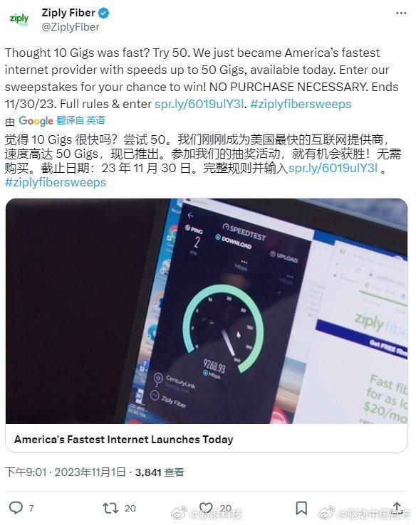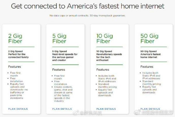 【#美国一运营商率先推出五万兆宽带#,每月900美元】