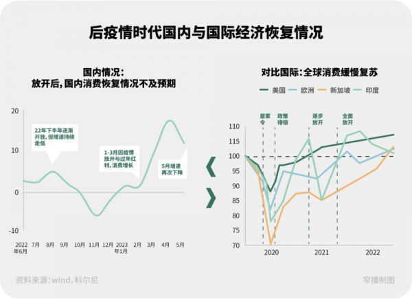 科尔尼把目前的中国消费市场定为“疫后恢复期”。其观察全球主要经济体在放开疫情管控后的消费恢复水平,发现除美国之外,其他国家、地区的消费增长也面临不同程度的挑战。