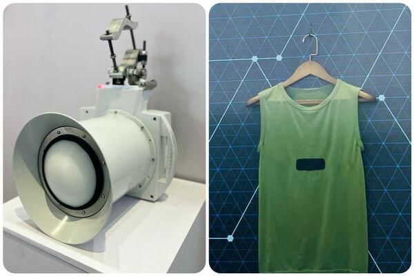 在“6G愿景”主题中,爱立信带来了两款现场展示,包括可达到100Gbps的超高下行速率的太赫兹原型机,以及一件由大量传感器纤维编织而成的背心原型。