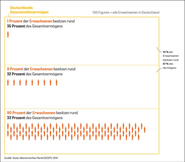 参与调研的DIW研究所专家Johannes König表示,总体来说,德国财富分布不均的状况远高于目前为止的推测结果。原因是,自从德国2009年引进对私人资本征收的统一税Abgeltungsteuer以及1997年停止征收财富税以来,富豪们的财产不交税的话就可能不为人所知。因此对富豪财产的统计数据出现了严重的缺失。