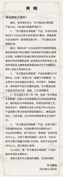 东方甄选回应铁头打假质疑:完全符合产地、原粮、工艺追溯要求
