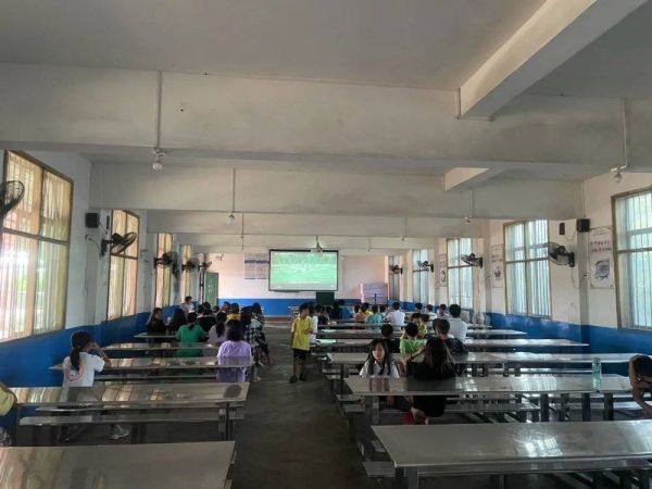新田苦志育才校长乐巍则发现了“失依儿童”更长期的问题,“很多人人生没有目标和方向,不知道读书是为了什么。”他的办法是给孩子们办各种兴趣班,双截棍、古筝、篮球、乒乓球,只要让学生能找到兴趣目标,“不论小或大的,先有个小目标往前走”。学校的一块小菜地也是孩子们扔铅球的练习场。周日,食堂则成了临时的电影院,大大小小的孩子坐成一排排,看投射在屏幕上的动画电影。