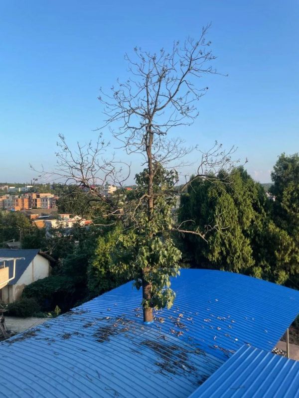 这棵大树正好挡到食堂外的洗漱池,被留存了下来