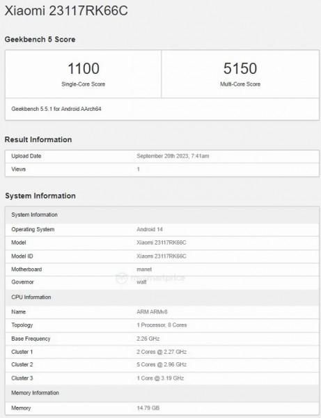 Redmi K70 Pro 跑分,图/ Geekbench作为参考,极客湾在小米 14 的 Geekbench 5 测试中测得,小米 14 单核成绩 1693,多核成绩 6782。不过还不好判断,Redmi K70 Pro 是在调校策略上有所不同,还是使用了骁龙 8 Gen 3 的降频版本。
