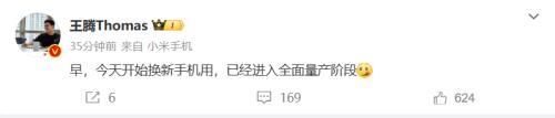 而 Redmi 品牌发言人、Redmi 市场部总经理王腾今天也在微博发文,暗示新手机已经进入全面量产阶段。