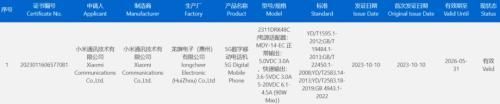 认证信息显示,23113RKC6C 机型制造商为小米通讯技术有限公司,23117RK66C 机型制造商为北京小米电子产品有限公司,两款机型的生产厂均为惠州光弘科技股份有限公司,支持最高120W 快充。