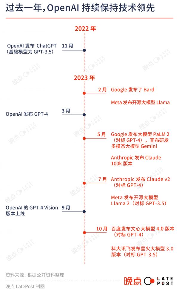 OpenAI 成立之初是一个开放的研究机构,它在 2020 年发布 GPT-3 时详细公开了技术细节。ChatGPT 点燃人工智能市场后,GPT-3 降低了整个行业追赶的难度。