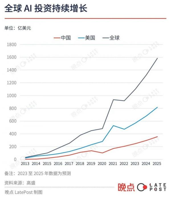 根据麦肯锡今年 4 月发起的调研报告,40% 的公司因为生成式人工智能出现,决定加大对人工智能投资。高盛在 8 月预测,全球的企业今年朝人工智能领域投资 1102 亿美元,比去年增长 20%。