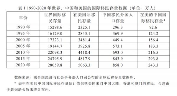 从中国移民状况来看,2020年中国移民国外的总人口为858.0万,其中在美中国移民存量为243.3万人,占中国移民外国总人口的28.4%,相当于每4个中国移民中至少有1个移民美国,美国是中国移民的主要目的地。