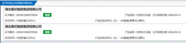 IT之家发现,通过认证的 AR 眼镜共有两款,分别为 XGZ020C 和 XGZ010C,不排除是同一产品的不同版本,均支持 10W 充电,制造商为湖北星纪魅族集团有限公司,生产厂为立讯电子科技(昆山)有限公司。