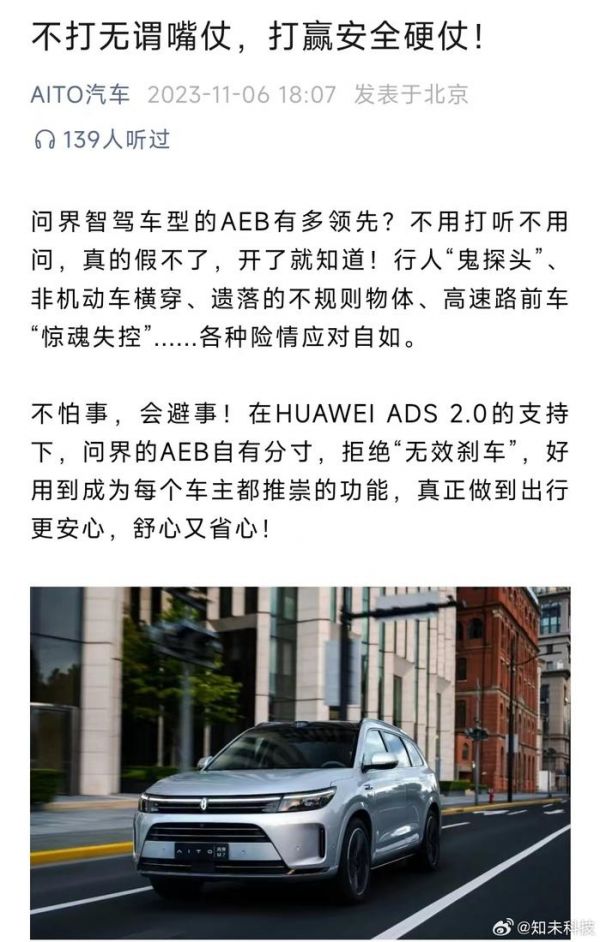 余承东何小鹏AEB之争发酵 问界:不打无谓嘴仗 打赢安全硬仗