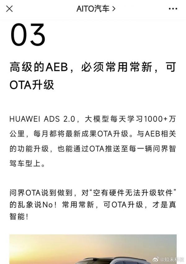 日前,对于小鹏汽车下场科普AEB相关内容,AITO问界发文回击:不打无谓嘴仗,拒绝“无效刹车”。另外,文中还专门提到一句:对“空有硬件无法升级软件”的乱象说No!