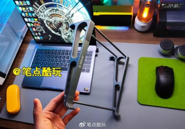 我不太喜欢那种带主动散热风扇的支架,一是厚重,在家用还行,但在家里用,还不如我用电风扇对这笔记本直接吹呢。直接架高,还没噪音。