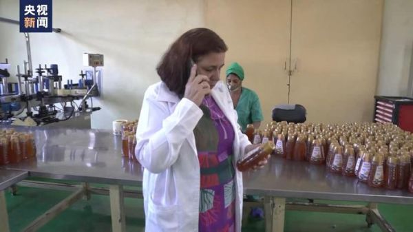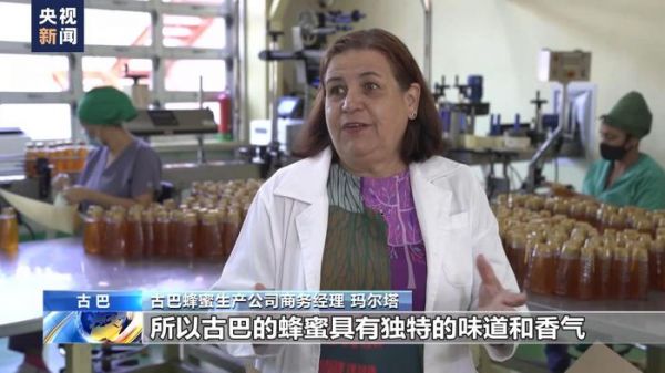 古巴蜂蜜生产公司商务经理 玛尔塔:现在我们在这检查这些蜂蜜制品,这些就是我们想推荐到中国市场的。由于这里都是热带的野花,所以古巴的蜂蜜具有独特的味道和香气。就这样,我们成功把古巴的产品推广到了中国。