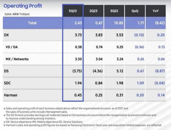三星2023年Q3季度财报