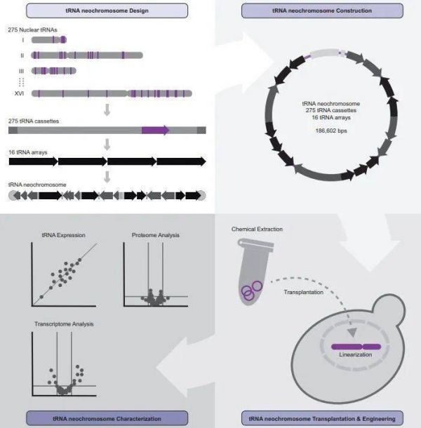 ▲从头合成tRNA新染色体的研究示意图(图片来源:参考资料[2])