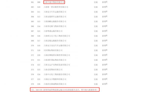 值得注意的是,此次的名单共新增了21家物流企业,包括上海中通吉物流有限公司。