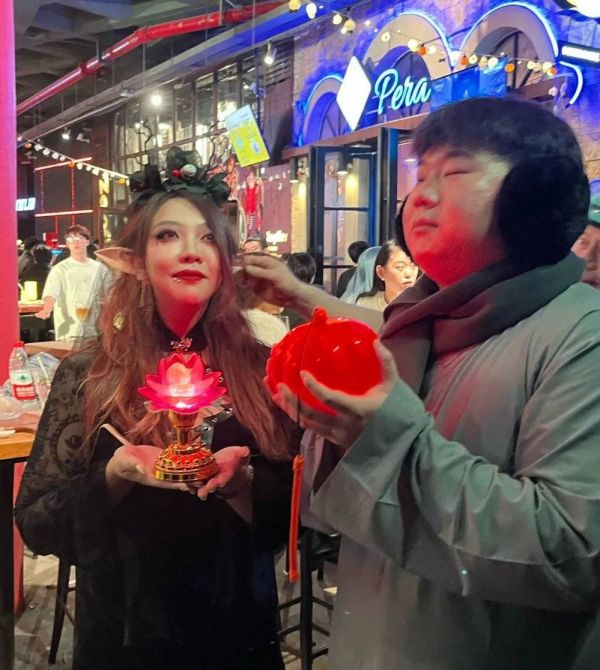 看见叉烧手上拿着南瓜灯,“正峰欧巴”主动要求交换道具合照。(图/小红书@生旧叉烧好过生你)