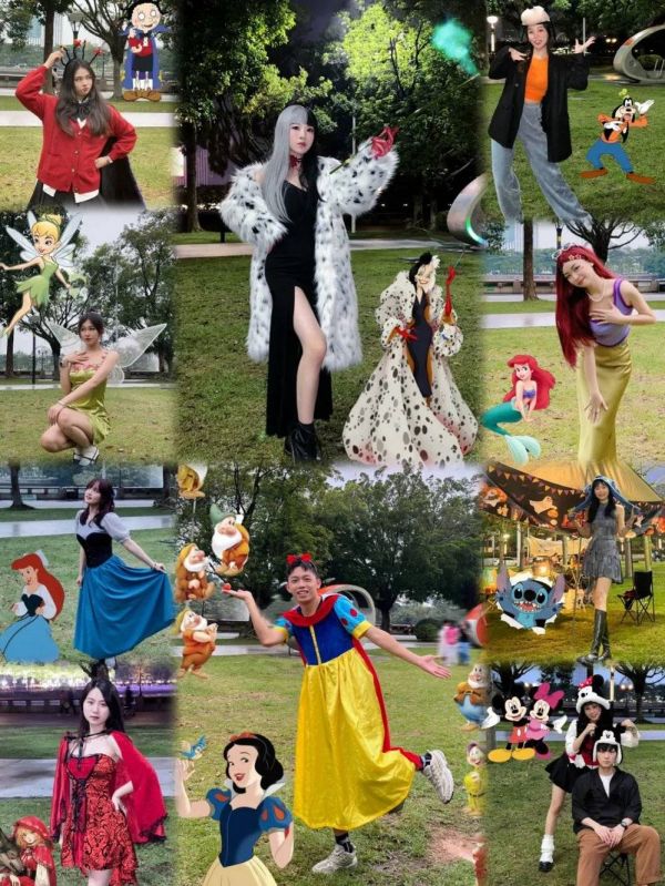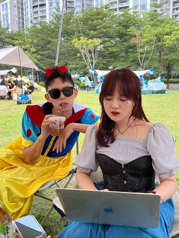 如果你在广州临江大道的露营区,看见过一伙装扮成奇妙仙子、反串版白雪公主、黑白魔女库伊拉、迪士尼高飞等各色人物的年轻男女,那应该就是小椰和她的朋友们,“只有我们是变装派对,其他都是正常人聚会”。